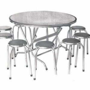 Bộ bàn tròn 6 ghế làm bằng inox ra đời để phục vụ cho những khách hàng có nhu cầu sử dụng loại sản phẩm kiểu dáng sang trọng với giá thành hợp lý. Bộ sản phẩm này bao gồm 1 bàn và 6 ghế tròn làm bằng inox không gỉ, đem lại vẻ đẹp và sự sang trọng cho cả căn phòng. Độ cao chênh lệch giữa mặt bàn và mặt ghế được thiết kế rất hợp lý giúp người sử dụng có thể ngồi ăn uống, làm việc, học tập một cách thoải mái. Bên cạnh đó, tất cả các chiếc ghế đều có tựa lưng cao 0,6m, giúp người sử dụng thả lỏng cơ thể dễ dàng. Ngoài ra, cả bàn và ghế đều có khả năng xếp gọn giúp người dùng dễ dàng vận chuyển, mang đi đồng thời tiết kiệm được không gian cất chứa. Mặt bàn có bộ khung chịu lực được thiết kế gồm 4 chân inox đường kính 32mm, dày 0,8mm cho phép chịu được trọng lượng lên tới 180kg. Trong khi đó mặt ghế với 4 chân inox đường kính 25mm, dày 0,8mm có thể chịu được trọng lượng người ngồi lên tới hơn 140kg.